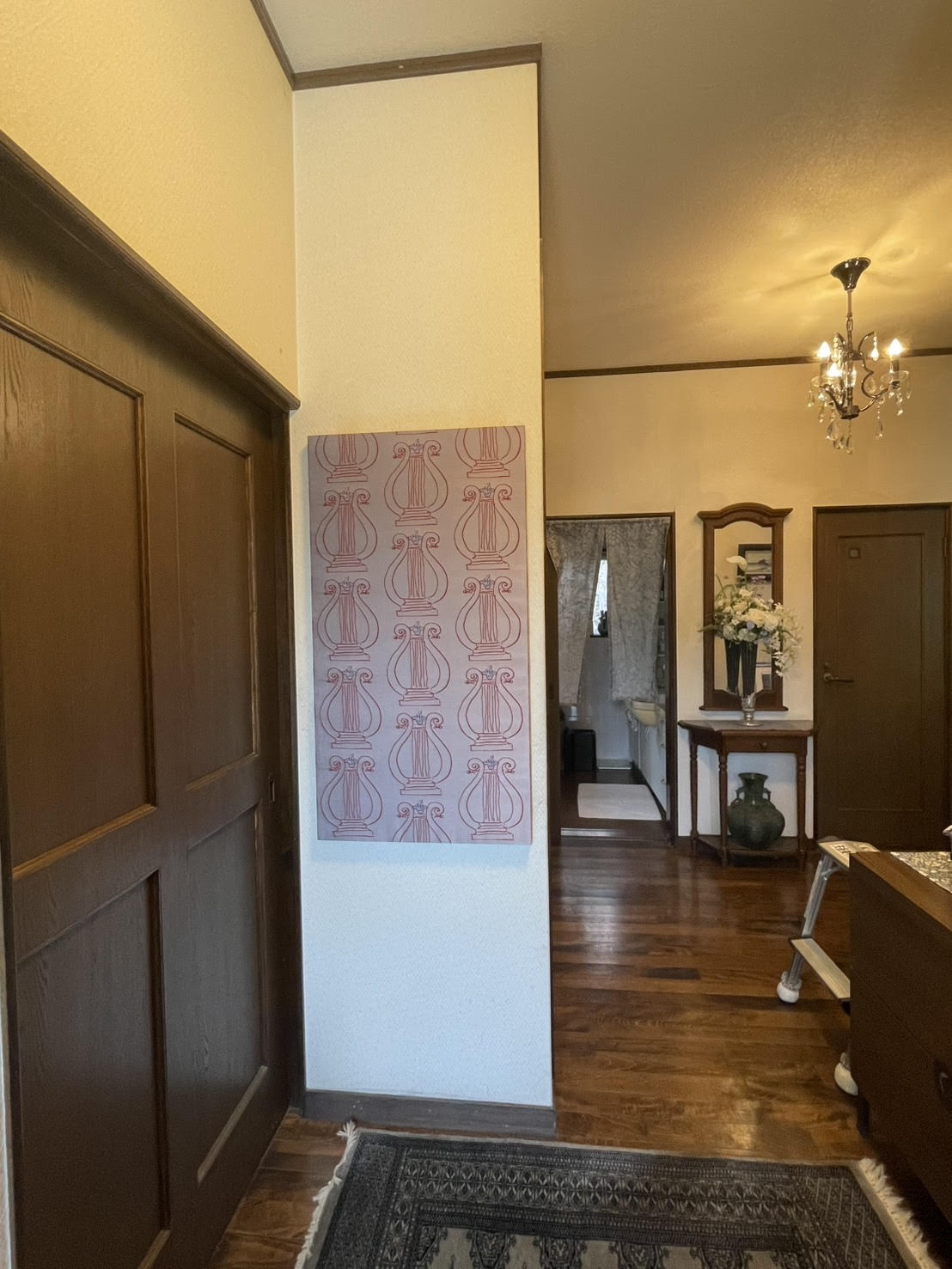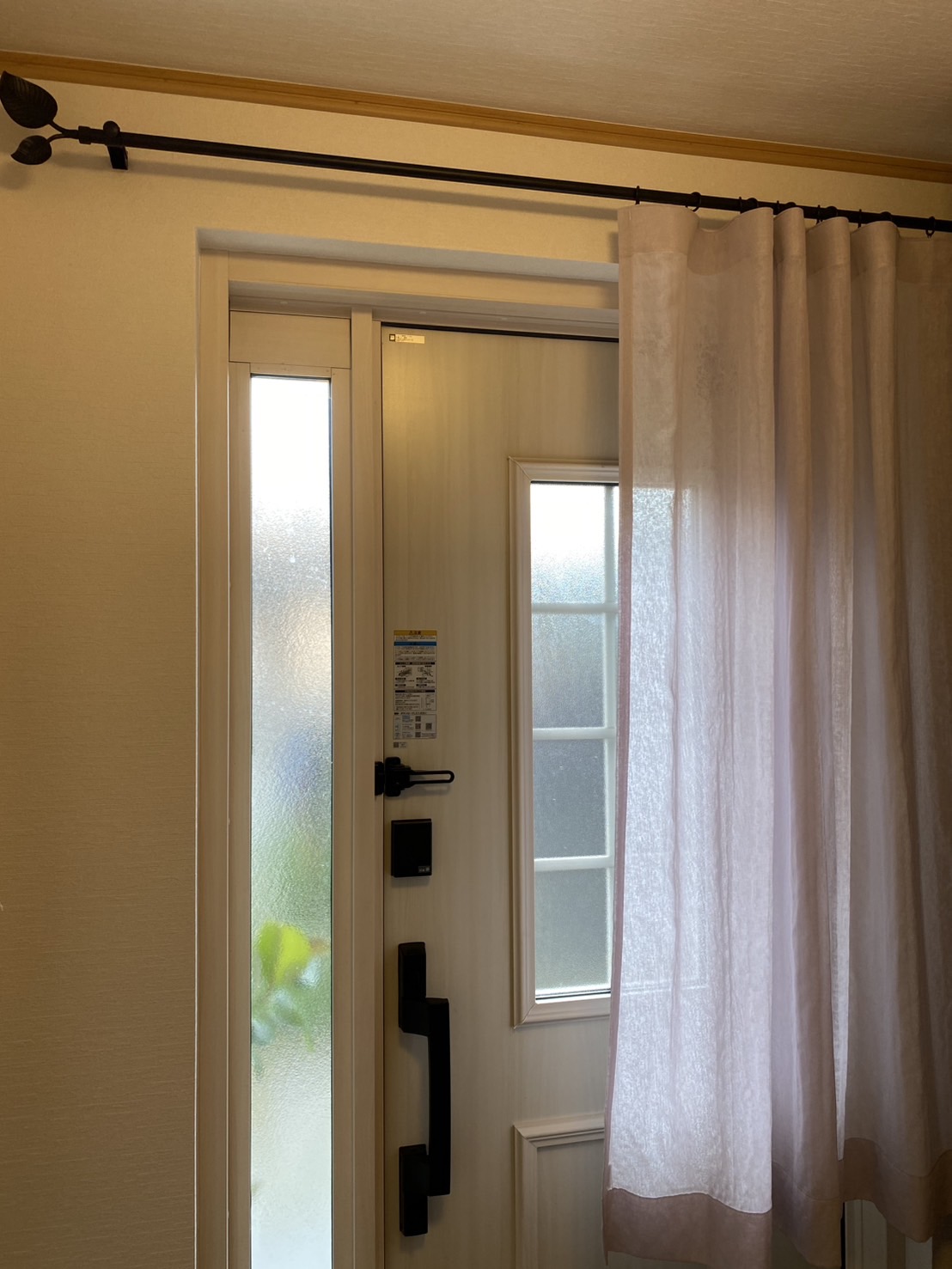 玄関の扉前に、以前弊社でお買い上げ頂いたレースを取付