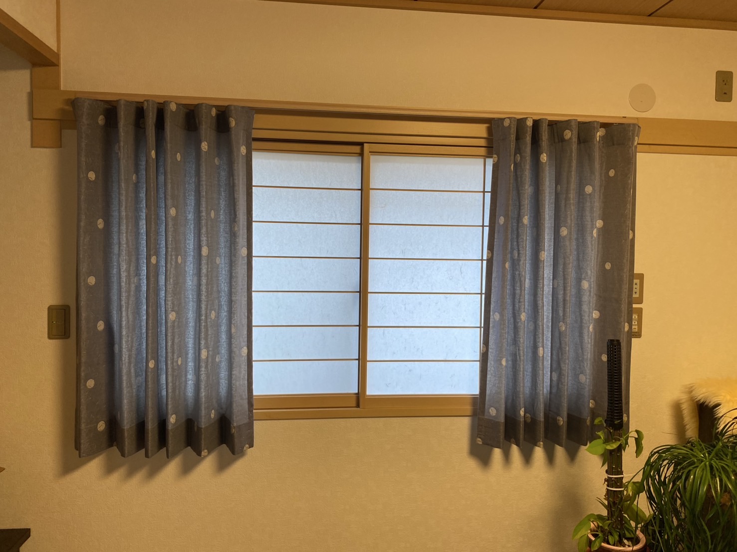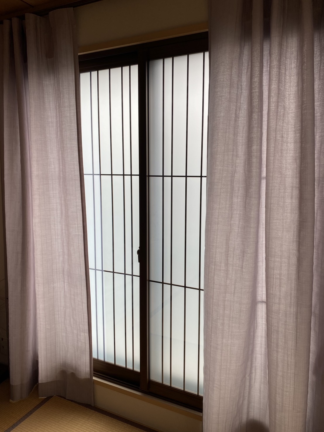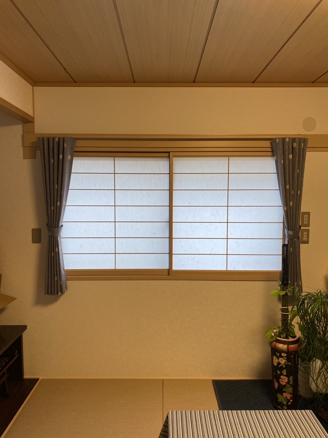 和室の障子をレース代わりに使用して、前面にドレープを取付