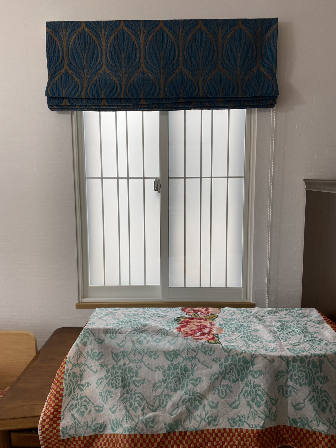 個性的な生地ですが、インテリアに馴染んで最初から飾ってあるかのような雰囲気ですね