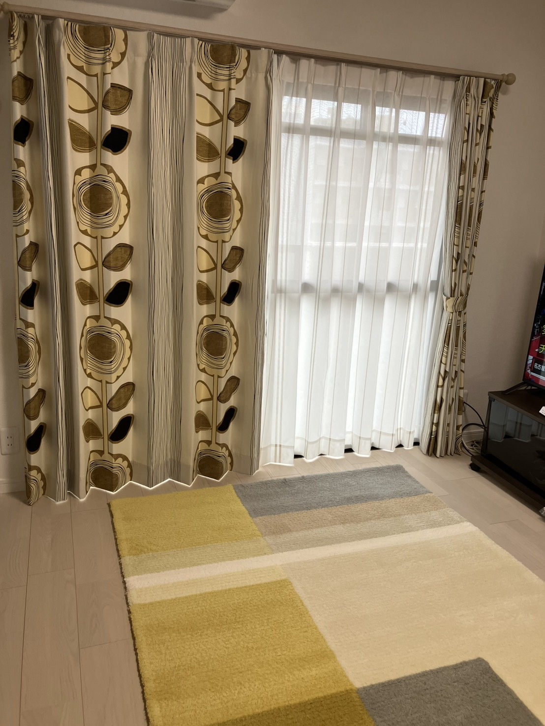 カーテンとコーディネートしたラグもご購入いただきましたよ♪